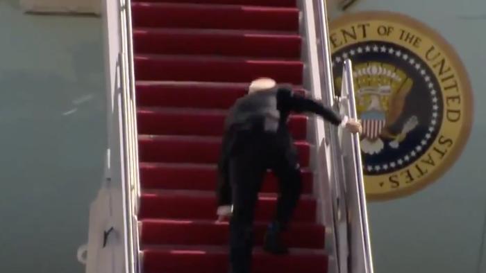 “It’s Pretty Windy Outside” – White House Blames ‘Climate’ For Biden’s Biff On Air Force One Steps